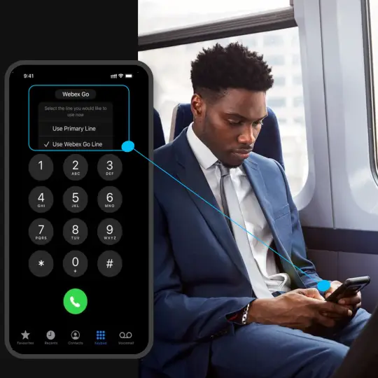 With Webex Go, customers can enable an e-sim to carry their business line on their personal mobile phone without the hassle of juggling multiple apps or phone numbers. Whether they work from home, the office, or anywhere in between, Webex Go’s expansive network ensures reliable, high-quality calls from any location.